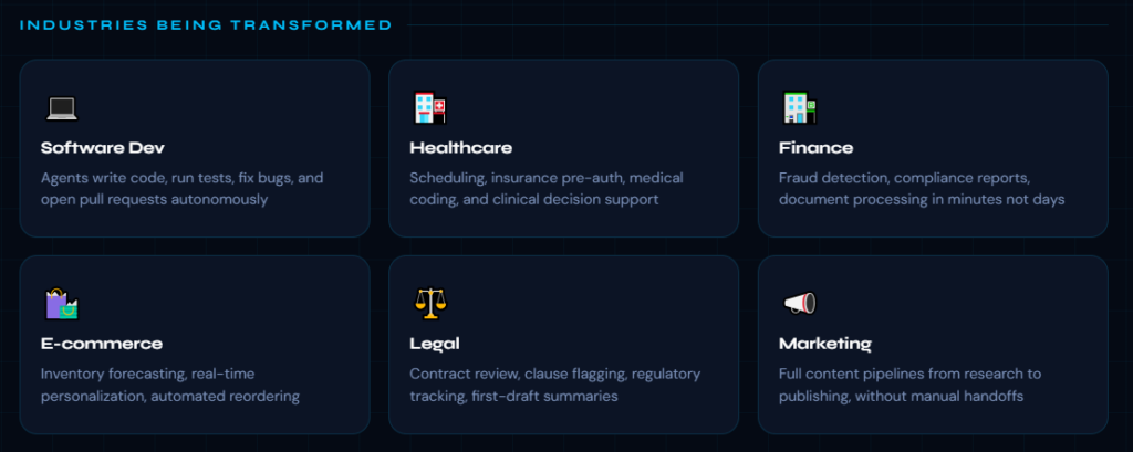 Agentic AI is not something that is coming. It is already here, already deployed, and already producing real results in industries ranging from software development to healthcare to finance.