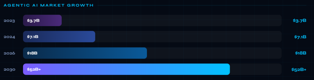 - The agentic AI market is on track to grow from around $8 billion today to over $52 billion by 2030